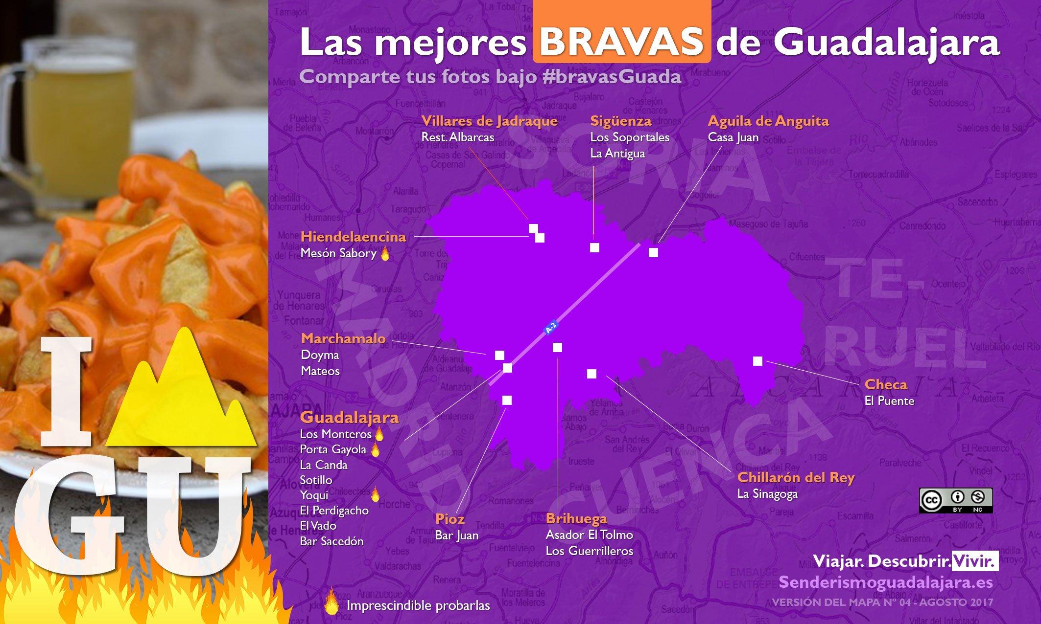 Tras el enorme éxito del mapa de Torreznos de Guadalajara llega... el mapa de las mejores bravas de la provincia de Guadalajara.