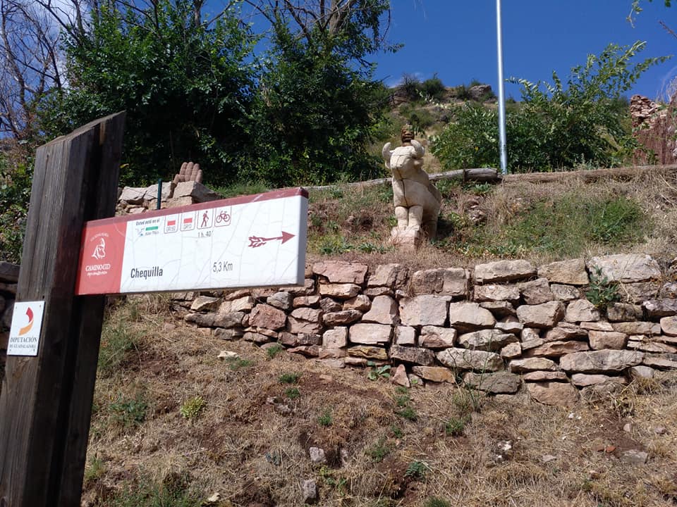 Es mediodía, y aprovechamos la terraza del bar de la localidad, para dar cuenta de los bocadillos que habíamos adquirido en Orea, junto con unas cervezas y unos cafés. Charlamos con los titulares del bar y un par de paisanos, y nos comentan que el bar se va a cerrar pues ya son muy mayores. Esperemos que alguien se haga cargo. Inmortalizamos la localidad y nuestro paso por la misma, y retomamos el camino, abandonando Chequilla en dirección sur por donde hemos llegado.